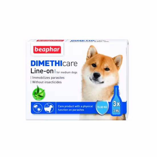 BEAPHAR Dimethicare Line-on Fästingmedel 15-30 kg 249.00 SEK I lager Lägg i korgen Bonuscard: 10% rabatt på hundmat! Är du medlem hos oss så registreras automatiskt dina köp hos oss. Eventuella rabatter återbetalas direkt efter ditt köp. Gäller ej kampanjvaror. Bli medlem idag! Alltid när du handlar hos Bow Wow Betala enkelt med Klarna faktura, kort, swish eller bankbetalning. Snabba leveranser från eget lager. Enkla byten och returer. Fri frakt över 599kr. Information Recensioner Beaphar Dimethicare Line-On för medium hundar (mellan 15-30 kg) kan användas för att stödja underhållet av huden och pälsen. Förutom den mjukgörande funktionen i produkten, så kan den även användas för att behandla djur mot parasiter.Dimethicon lägger ett kladdigt lager runt loppor, fästingar och andra parasiter, som förhindrar dem att röra sig, vilket gör att de dör. Parasiterna kommer att falla av, eller kan borstas av. Pälsen blir däremot inte kladdig. Den kladdiga effekten är på micro nivå och påverkar bara parasiterna.För medium hundar 15-30 kg.Mjukgörande.Med Aloe Vera.Stödjer underhållet av pälsen.Kan även användas för att behandla djur mot parasiter.Verksamt efter 3-6 dygn.Används efter 12 veckors ålder.