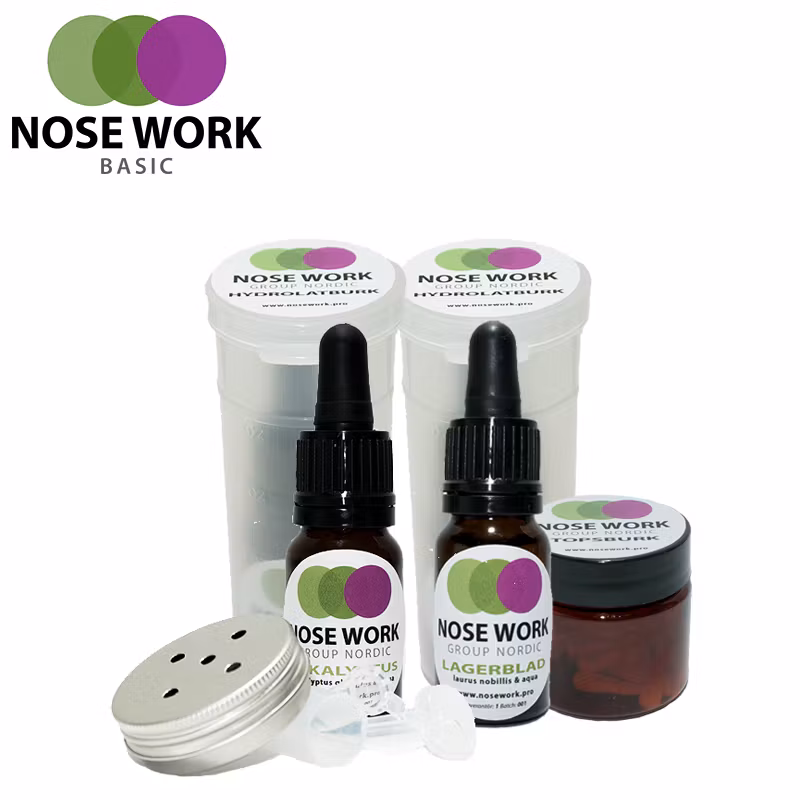 NOSE WORK Mellankit 379.90 SEK Produkten är tyvärr slut i lager. :( Bonuscard: 10% rabatt på hundmat! Är du medlem hos oss så registreras automatiskt dina köp hos oss. Eventuella rabatter återbetalas direkt efter ditt köp. Gäller ej kampanjvaror. Bli medlem idag! Alltid när du handlar hos Bow Wow Betala enkelt med Klarna faktura, kort, swish eller bankbetalning. Snabba leveranser från eget lager. Enkla byten och returer. Fri frakt över 599kr. Information Recensioner Träningskit som inkluderar dofterna eukalyptus och lagerblad, flera olika varianter av behållare, topshuvuden och förvarningsburkar till dina hydrolater. Kitet innehåller allt för att du skall kunna träna i de två första klassera (NW1 och NW2).Utrustning för alla NW1 och NW2.En behållare i storlek XXS.Två behållare i storlek XS.Två behållare i storlek S.Två hydrolatburkar till flaskor på 10 ml.En eukalyptushydrolat, 10 ml.En lagerbladshydrolat, 10 ml.En topsburk med 40 st ekologiska topshuvuden.