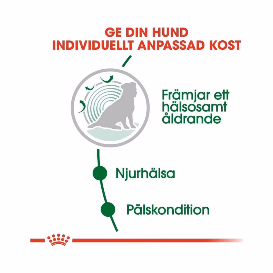 ROYAL CANIN Mini Ageing 12+ 149.00 SEK Produkten är tyvärr slut i lager. :( Bonuscard: 10% rabatt på hundmat! Är du medlem hos oss så registreras automatiskt dina köp hos oss. Eventuella rabatter återbetalas direkt efter ditt köp. Gäller ej kampanjvaror. Bli medlem idag! Alltid när du handlar hos Bow Wow Betala enkelt med Klarna faktura, kort, swish eller bankbetalning. Snabba leveranser från eget lager. Enkla byten och returer. Fri frakt över 599kr. Information Recensioner ROYAL CANIN® Mini Ageing 12+ torrfoder är lämpligt för småvuxna hundar över 12 år som väger upp till 10 kg. Detta helfoder är speciellt utvecklat för att tillgodose hela näringsbehovet hos äldre, småvuxna hundar.Detta hundfoder är speciellt utvecklat för att specifikt stödja ett hälsosamt åldrande hos småvuxna hundar och innehåller mycket gynnsamma Omega-3-fettsyror som EPA och DHA. Det har även ett komplex av antioxidanter som bidrar till att neutralisera effekterna av fria radikaler.Torrfodret är också utvecklat med ett anpassat fosforinnehåll. Det bidrar till att stödja och bibehålla en hälsosam njurfunktion hos din hund när den åldras. Sammansättningen hjälper också till att stödja och bibehålla din hunds hud och päls i gott skick.Helfoder för äldre hundar av småvuxna raser.Stödjer ett hälsosamt åldrande hos småvuxna hundar.Bidrar till att stödja och bibehålla en hälsosam njurfunktion.Med omega-3-fettsyror och ett komplex av antioxidanter.