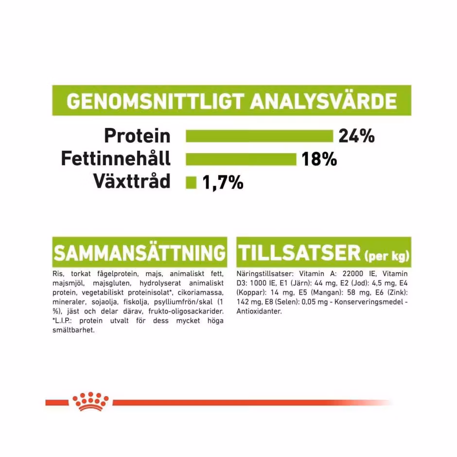 ROYAL CANIN X-Small Adult 169.00 SEK Produkten är tyvärr slut i lager. :( Bonuscard: 10% rabatt på hundmat! Är du medlem hos oss så registreras automatiskt dina köp hos oss. Eventuella rabatter återbetalas direkt efter ditt köp. Gäller ej kampanjvaror. Bli medlem idag! Alltid när du handlar hos Bow Wow Betala enkelt med Klarna faktura, kort, swish eller bankbetalning. Snabba leveranser från eget lager. Enkla byten och returer. Fri frakt över 599kr. Information Recensioner ROYAL CANIN® X-Small Adult torrfoder är lämpligt för mycket småvuxna hundar över 10 månader som väger upp till 4 kg. Detta helfoder är speciellt utvecklat för att tillgodose hela näringsbehovet.Innehåller mycket högkvalitativt protein (L.I.P) som valts ut för att det är lättsmält. Detta protein, i kombination med ett balanserat intag av kostfibrer som psyllium, bidrar till att underlätta en hälsosam tarmpassage.Dessutom bidrar fodret till att stödja hälsosamma urinvägar. Det är också berikat med Omega-3-fettsyror (EPA och DHA) som främjar hud och päls. De olika inkluderade vitaminerna bidrar till att stärka hudens barriärfunktion.Fakta om Royal Canin X-Small Adult:Helfoder för vuxna mycket småvuxna raser, upp till 4 kg.Foderbitarna är särskilt anpassade för mycket små käkar.Berikat med Omega-3-fettsyror (EPA och DHA).Bidrar till att underlätta en hälsosam tarmpassage.